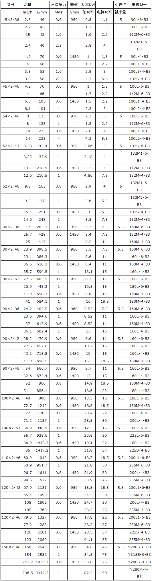 三、3GBW三螺桿瀝青泵主要技術(shù)參數(shù):