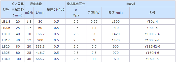 LB型冷凍機(jī)用齒輪泵性能參數(shù) 及配套電機(jī)。