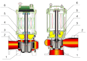 ◆ 防爆污水泵無內(nèi)自流循環(huán)冷卻系統(tǒng)的泵,電機(jī)部份露出液面不超過1/2。